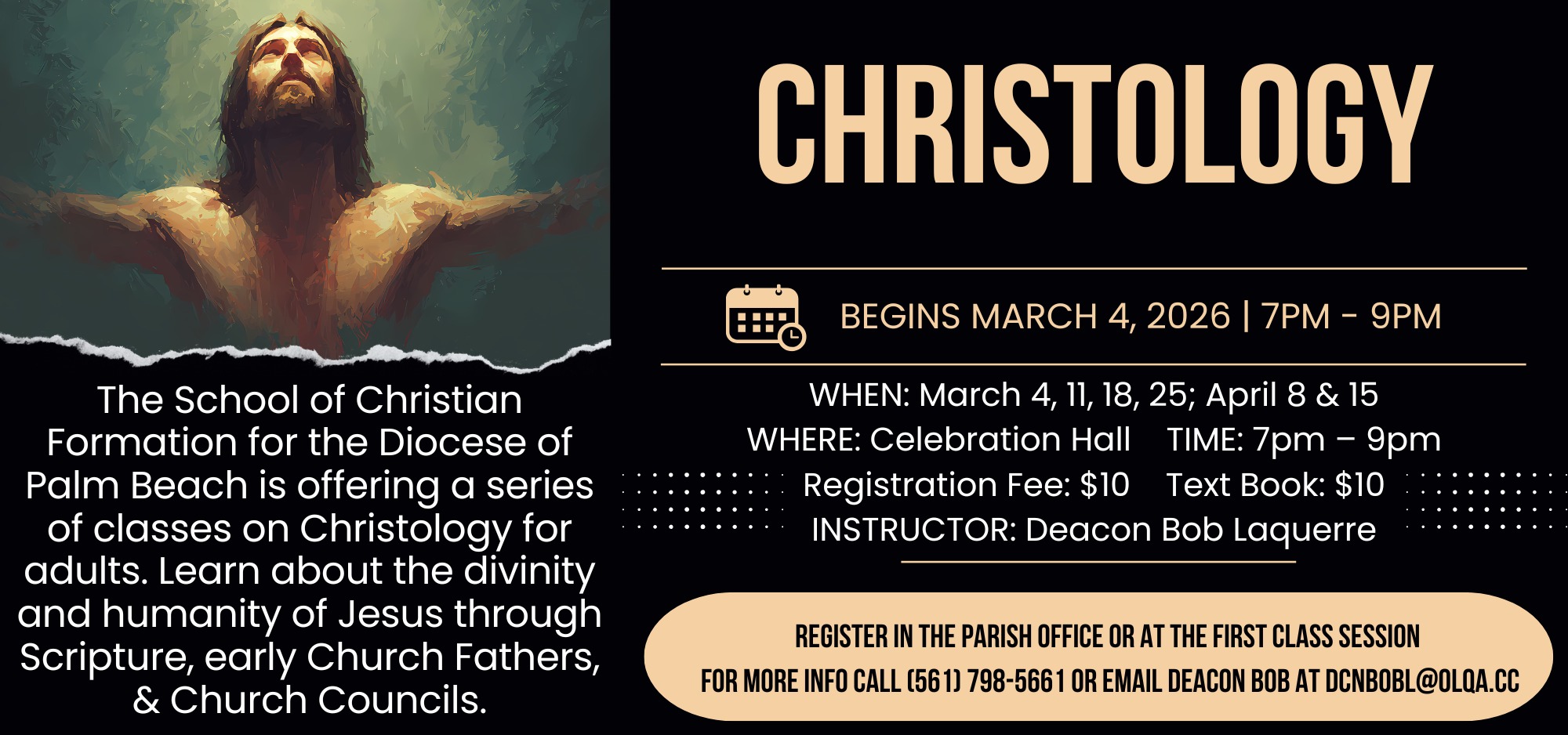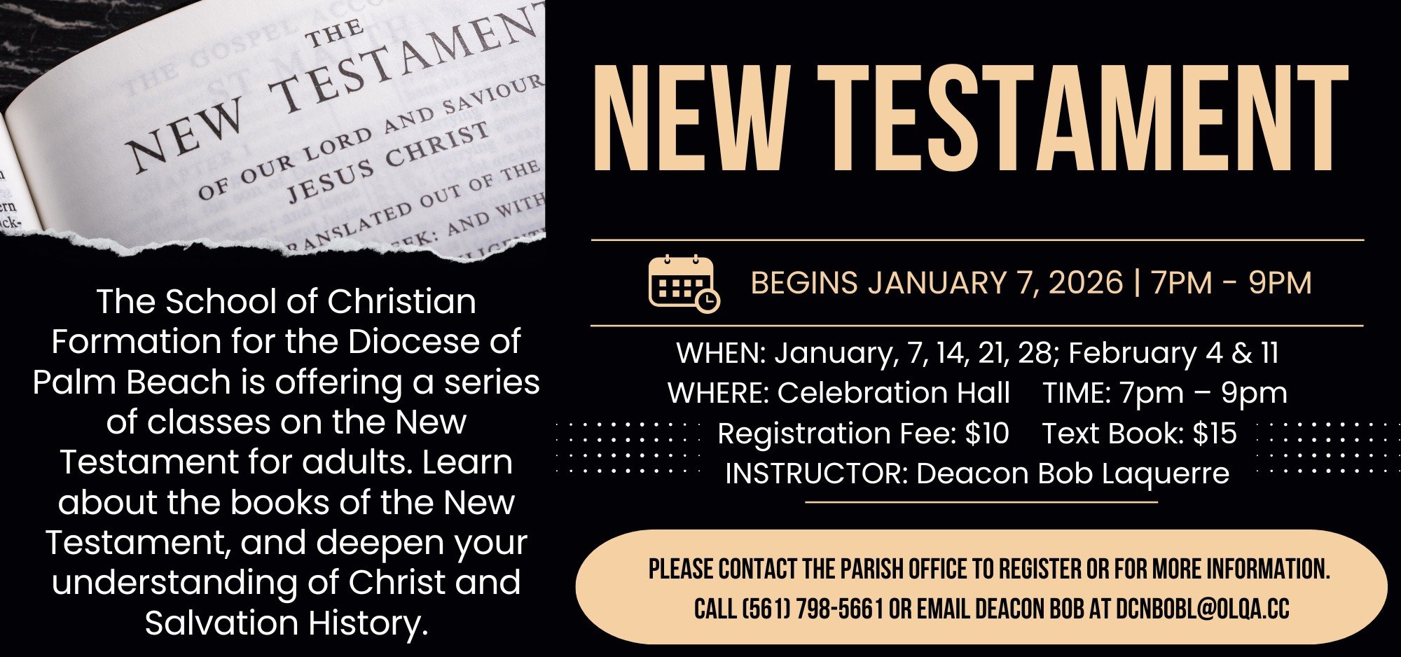 For more information, please contact Deacon Bob Laquerre, Director of Faith Formation at (561) 798-5661 ext. 105 or e-mail at [email protected]